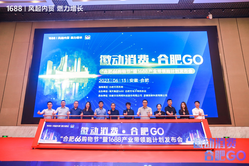2023年6月13日,徽動消費·合肥GO“合肥66購物節”暨1688產業帶領跑計劃發布會在合肥市盛大啟幕。